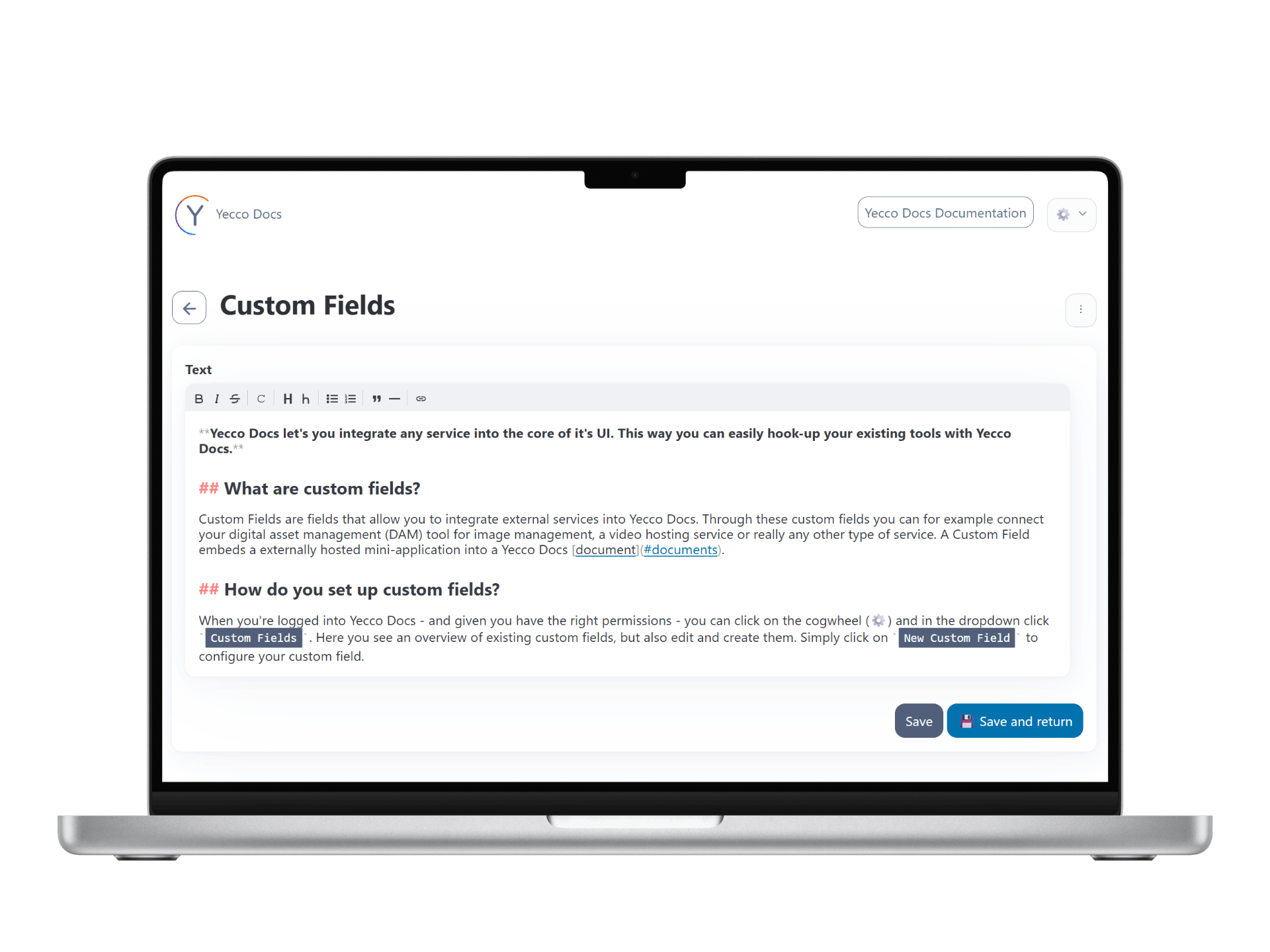 At the heart of the operation is a set of clear and straightforward APIs that let you integrate Yecco Docs with your existing tools and favorite frameworks. And webhooks let you react to things happening to content.